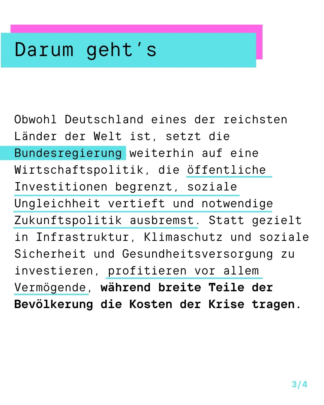 Obwohl Deutschland eines der reichsten Länder der Welt ist, setzt die Bundesregierung weiterhin auf eine Wirtschaftspolitik, die öffentliche Investitionen begrenzt, soziale Ungleichheit vertieft und notwendige Zukunftspolitik ausbremst. Statt gezielt in Infrastruktur, Klimaschutz und soziale